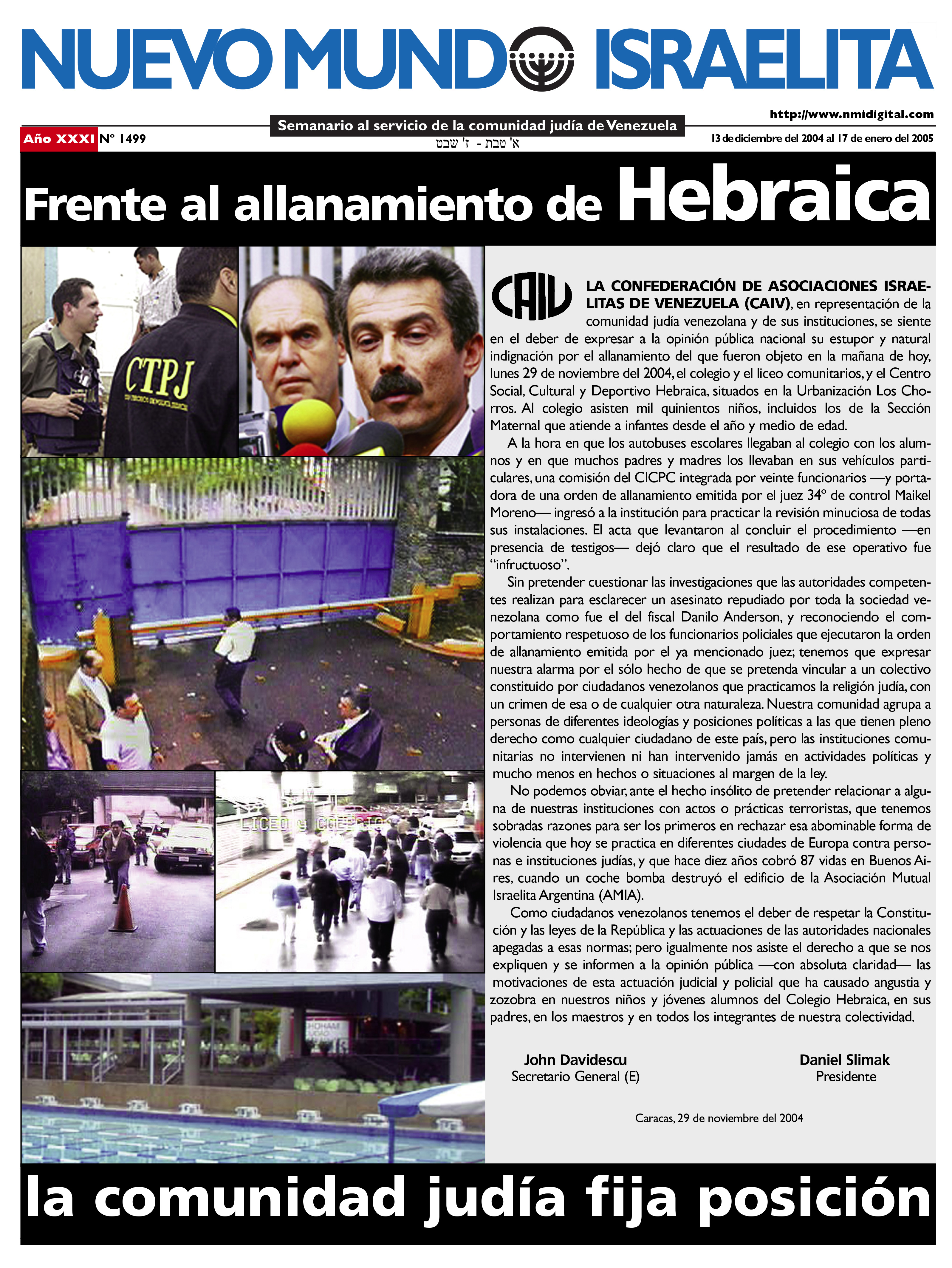 —Durante su permanencia en la CAIV, Hebraica fue víctima del primer allanamiento por parte del gobierno. ¿Cómo fue el manejo de este suceso por parte de la CAIV?