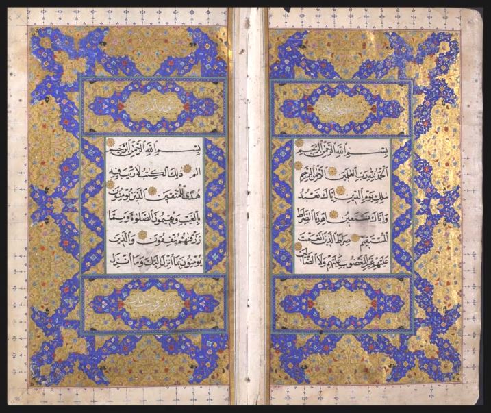 Páginas de un manuscrito del Corán perteneciente a la Biblioteca Nacional de Israel, expuesto durante el evento