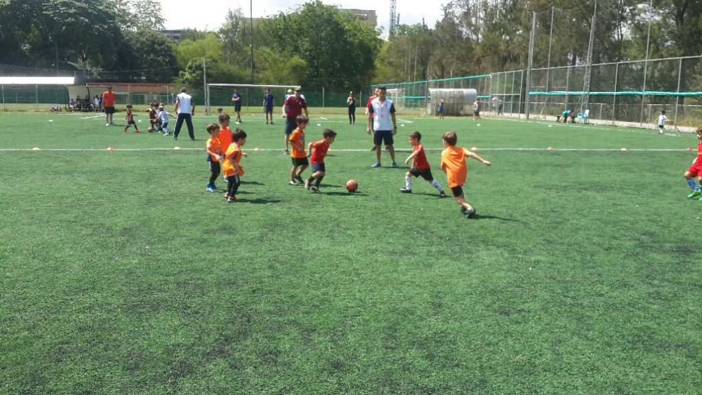 El pasado domingo 27 de mayo, se realizó la inauguración del Mini Mundial de Fútbol 50 Años Hebraica con la participación de los equipos minicompotas y compotas de nuestra institución. Más de 30 niños de edades comprendidas entre los 4 a 6 años vistieron entusiasmados la camiseta del equipo que se le asignó representar. Israel, Venezuela, España, Argentina e Inglaterra fueron los equipos que para este Mini Mundial se establecieron con el apoyo y la participación de todo el grupo familiar. Estos pequeños atletas disfrutaron de una jornada llena de gritos, cornetas y alegría.