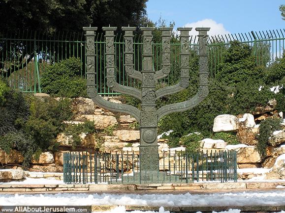 Símbolo de amistad: la menorá de la Knesset, uno de los emblemas de Jerusalén, fue un obsequio ofrecido por el Parlamento británico a su equivalente israelí en 1954 (foto: allaboutjerusalem.com)