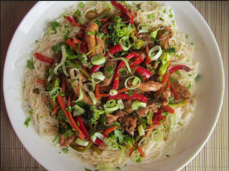 - Añadir el pollo sofrito, jengibre, salsa teriyaki, leche de coco, cilantro, jugo de limón y azúcar morena. Agregar los fideos, tapar y cocinar un poco.