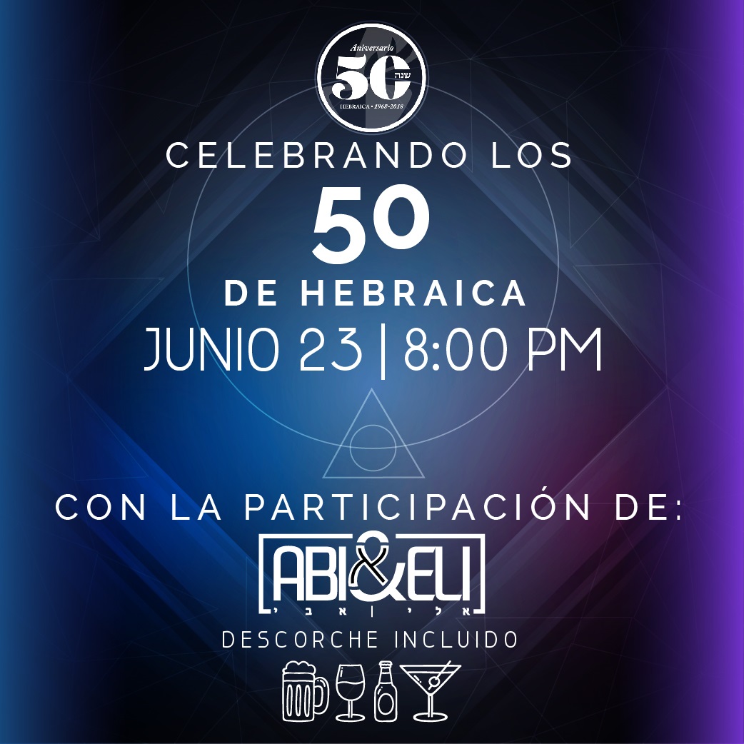 El próximo sábado 23 de junio a partir de las 8:00 pm Hebraica se viste de gala para celebrar su 50.° aniversario con una fiesta que unirá a nuestra comunidad en torno al regocijo de contar con este centro social, cultural, deportivo y religioso en el que hacen vida nuestros niños, jóvenes y adultos, y que ha dejado tantos recuerdos, valores, alegrías, educación, y experiencias compartidas.