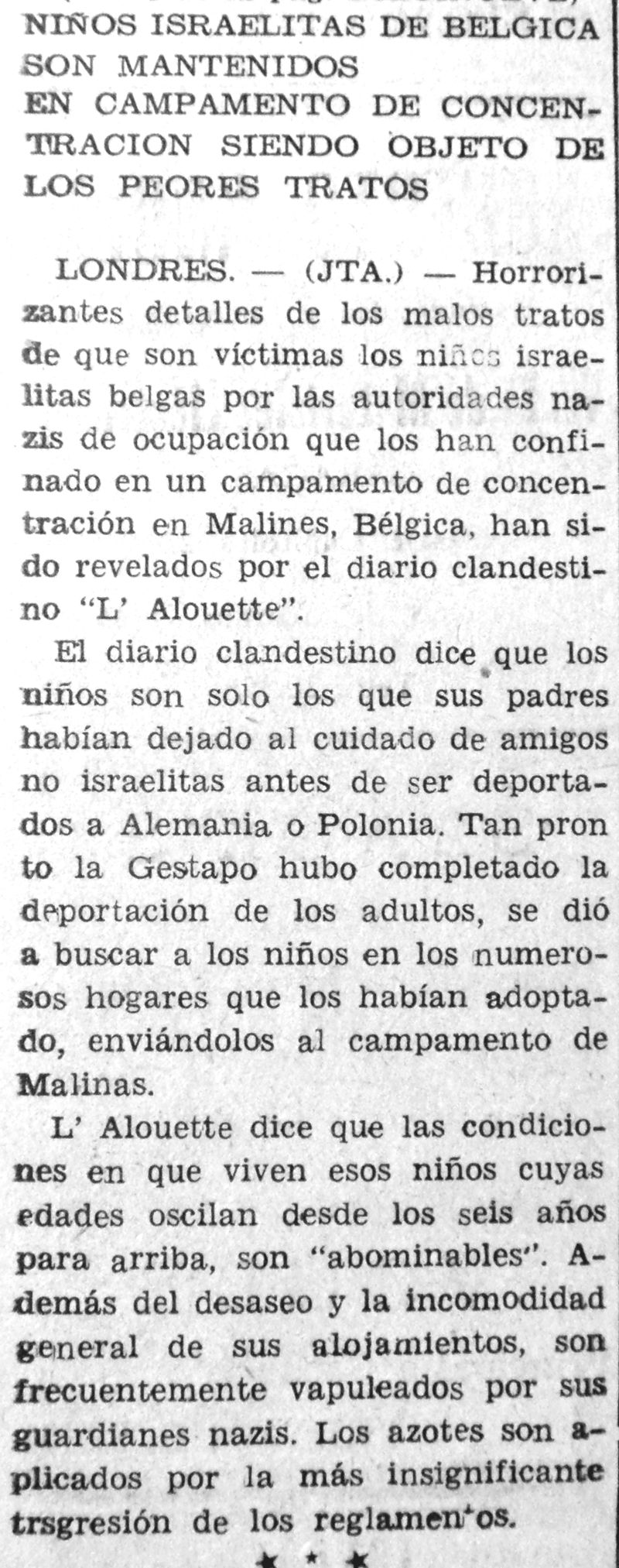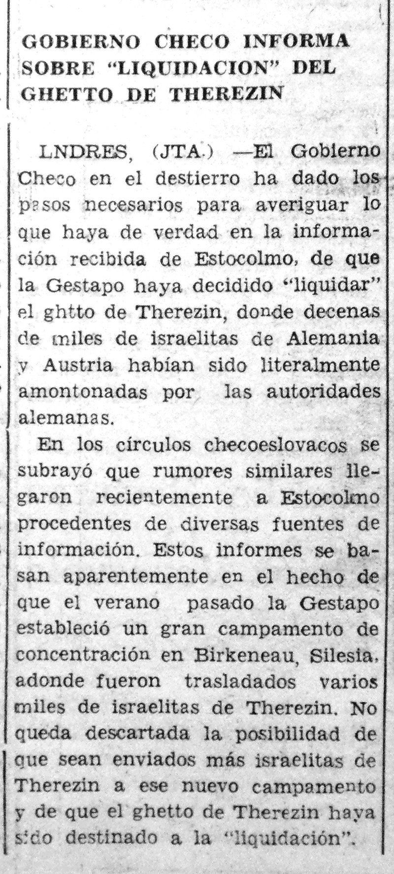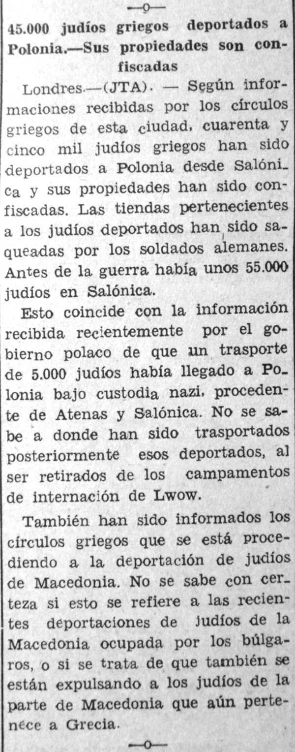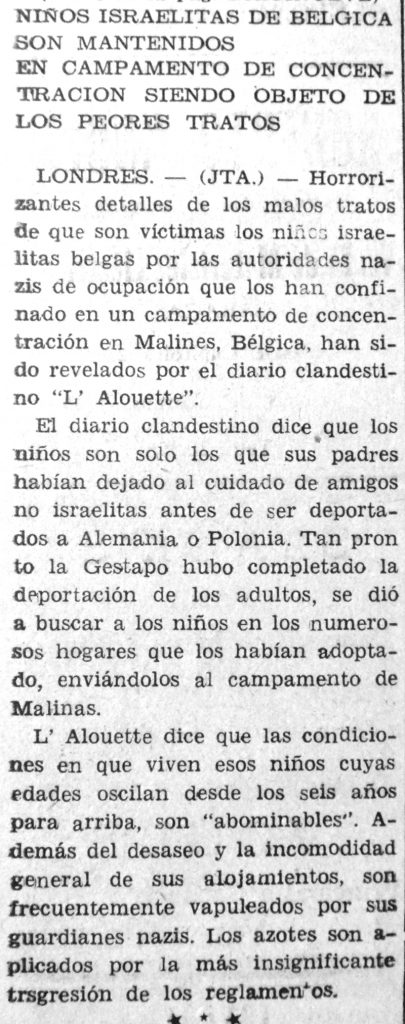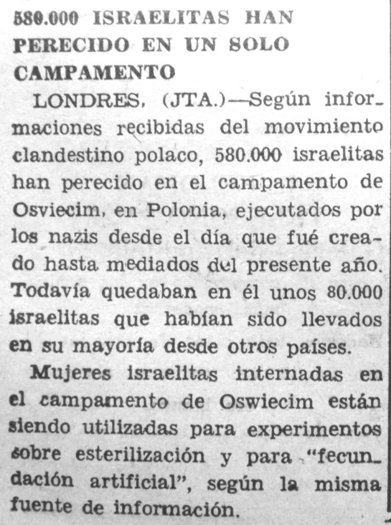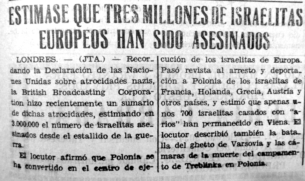 Resulta difícil imaginar cuán estremecedor debe haber sido para Moisés Sananes publicar y comentar las noticias que llegaban de Europa. Las cifras de decenas de miles se convertían en cientos de miles y luego en millones. Los nombres de Treblinka, Maidanek y sobre todo Oswiecim (Auschwitz) adquirían visos de horror. Había que traspasar a la tinta y el papel informaciones desgarradoras sobre niños judíos huérfanos que vagaban por los campos y familias enteras que se suicidaban.