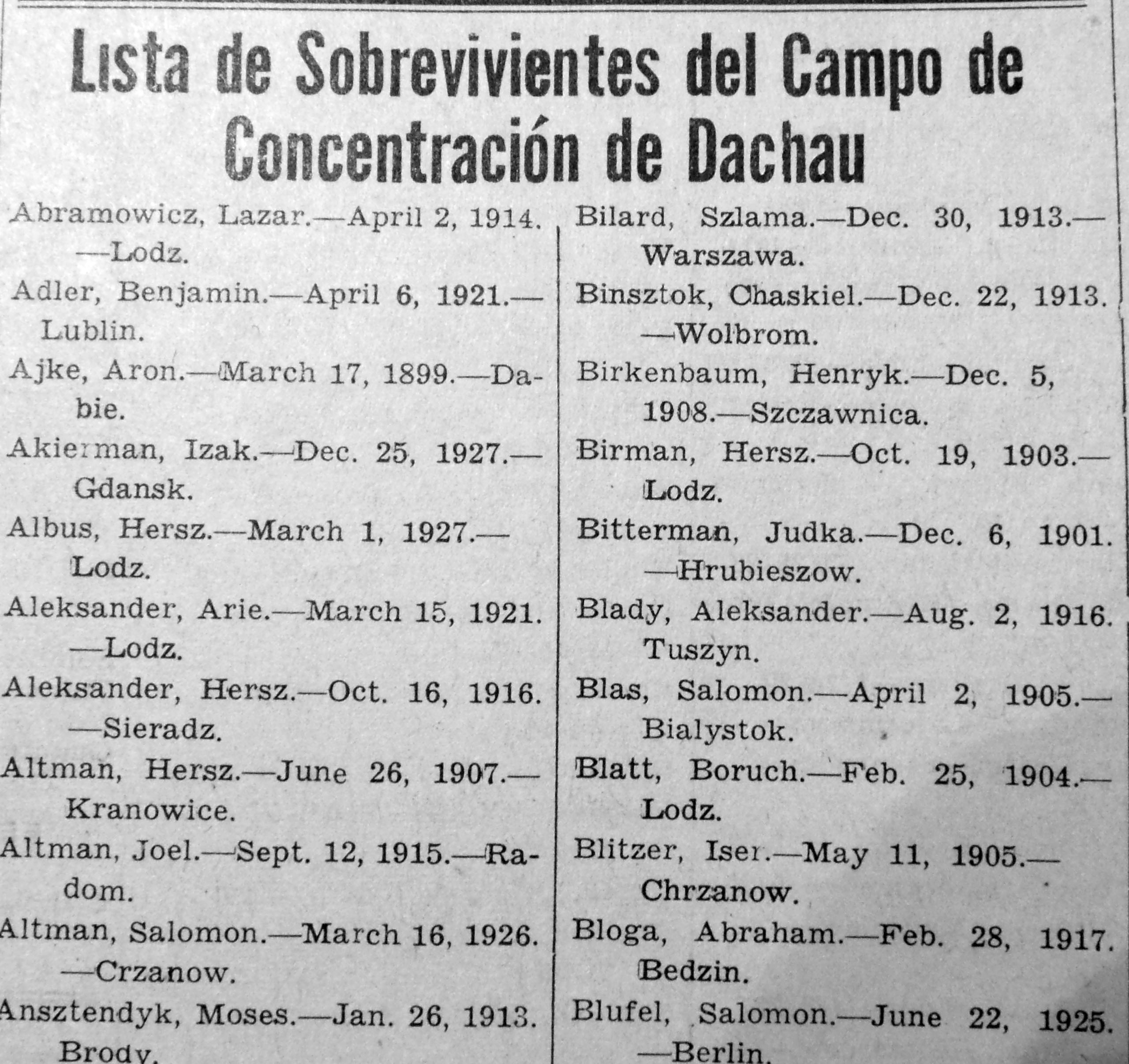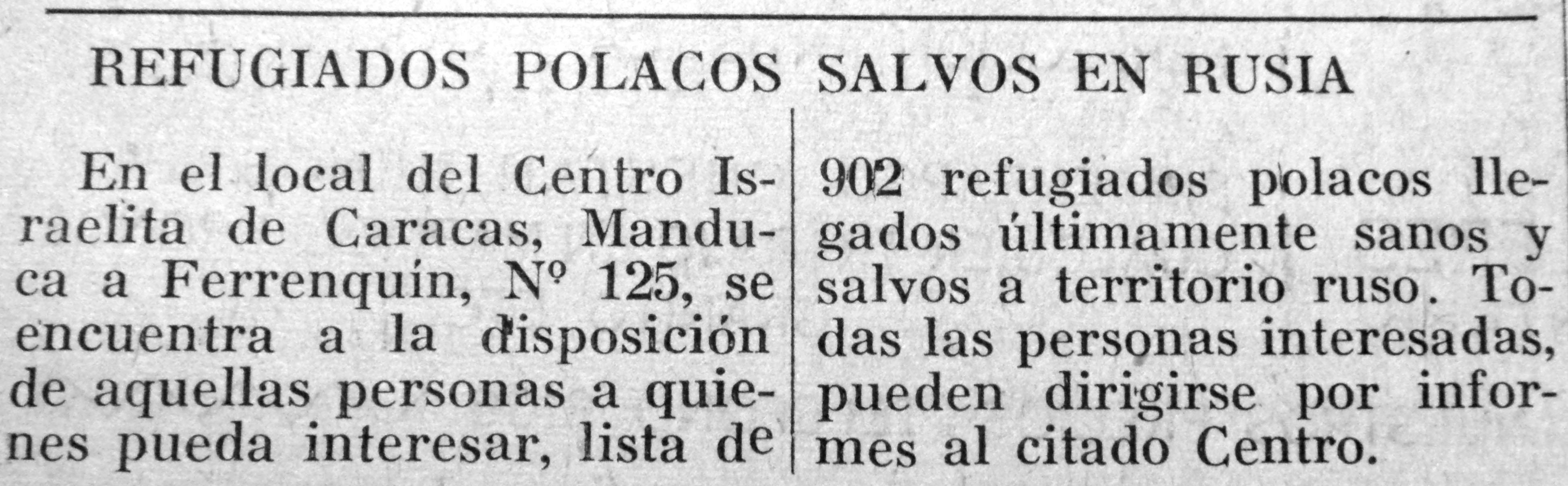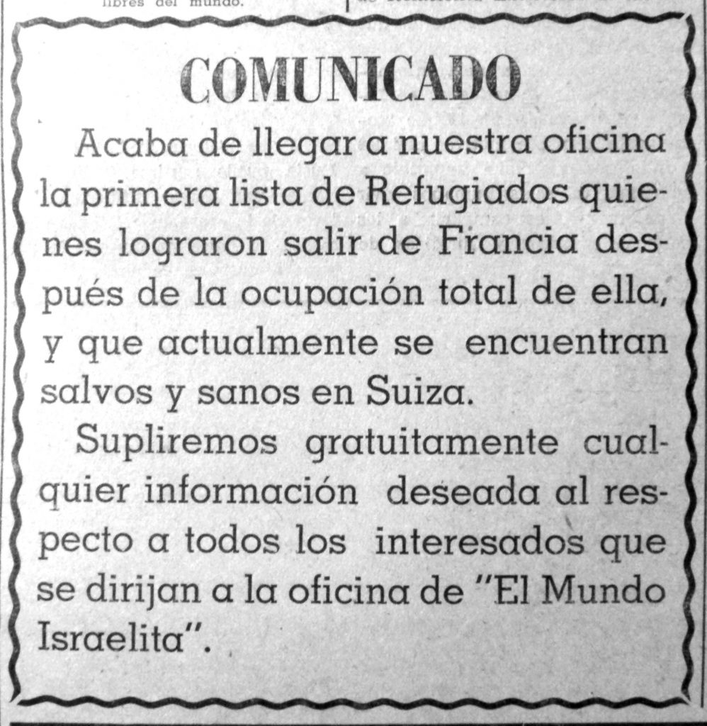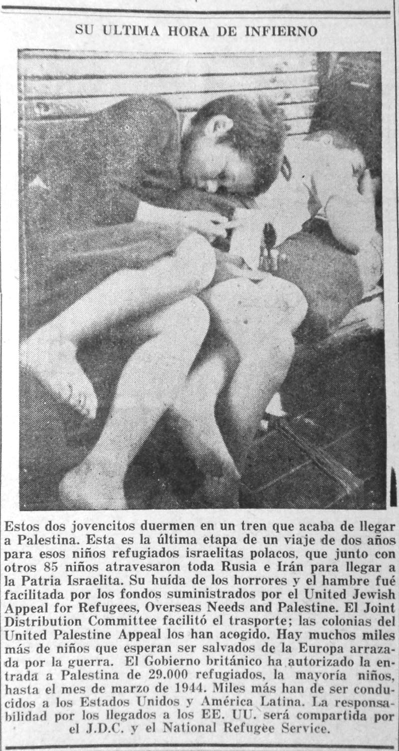 Para 1945 el tono había cambiado: ahora se veía en toda su magnitud el resultado de la catástrofe; aparecían, macilentos, quienes habían logrado salir vivos de la hecatombe. El Mundo Israelita publicó páginas y páginas llenas de listas de sobrevivientes de los campos de concentración y exterminio, de los guetos y de los escondrijos, por si acaso algún judío venezolano podría encontrar un nombre conocido y, con suerte, incluso el de algún familiar.