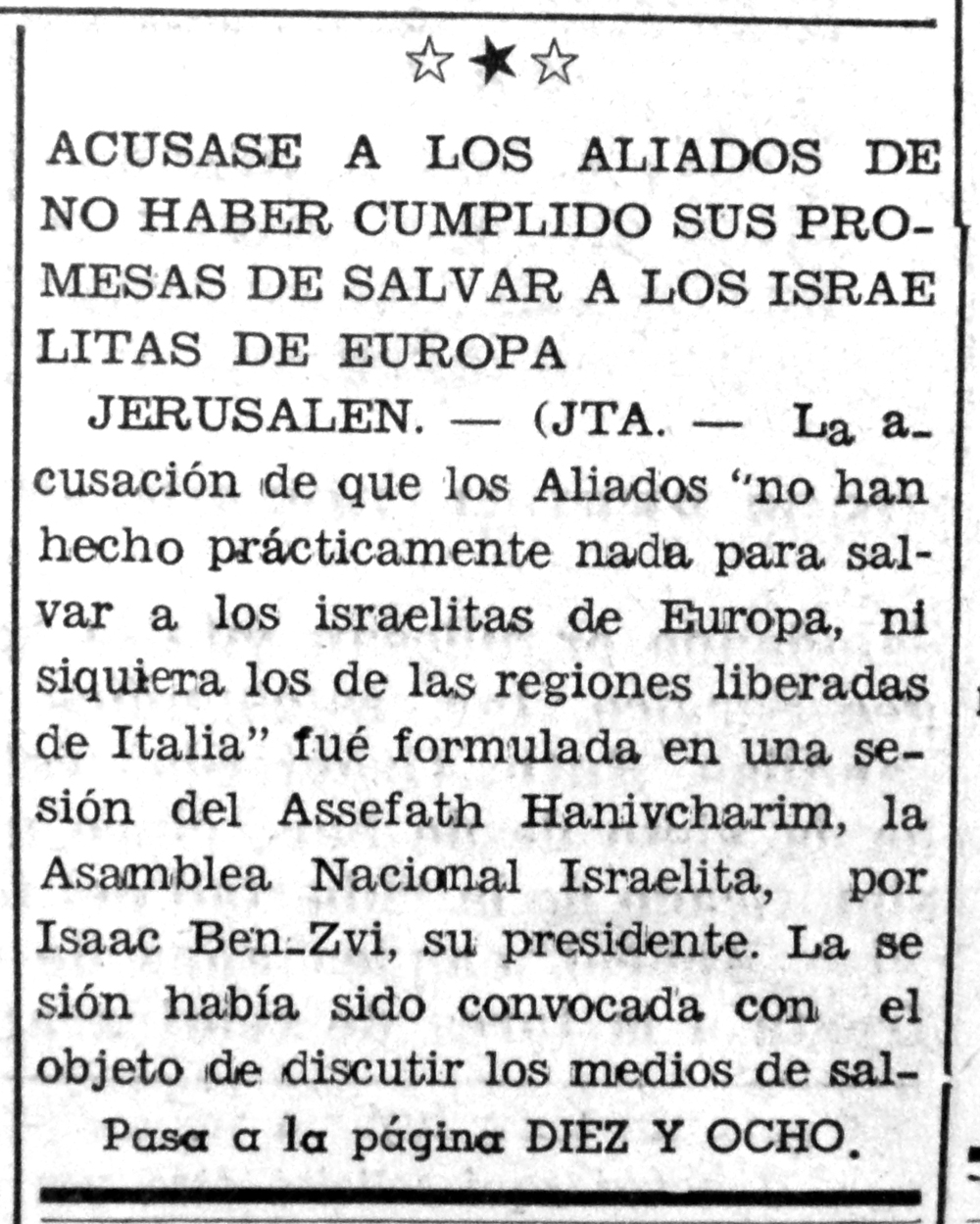 En sus editoriales, Sananes clamó por una respuesta urgente a la aniquilación sistemática de todo un pueblo, que no era –ni de cerca– tema prioritario para las potencias que luchaban contra el poder nazi, el cual aún lucía difícil de derrotar.