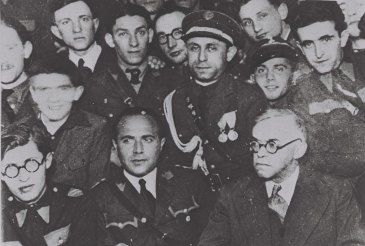 Jabotinsky en Varsovia en 1939, durante uno de los muchos eventos en los que urgió a los judíos europeos a abandonar de inmediato ese continente ante la amenaza del nazismo y emigrar a Palestina, con muy poco éxito. El primero de la izquierda es el joven Menajem Beguin, de 23 años de edad (foto: jewishjournal.com)