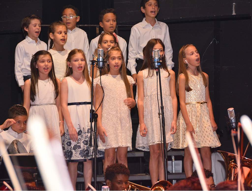 El grupo de jóvenes y niños integrantes de las cátedras de canto, violín, percusión y piano del Centro Cultural Educativo Hebraica Gonzalo Benaím Pinto fue parte especial del evento.