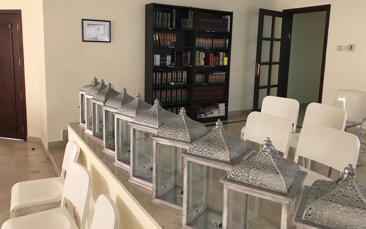 Aspecto de la pequeña sinagoga de Dubai, con la mejitzá que separa los sectores de hombres y mujeres (foto: The Times of Israel)