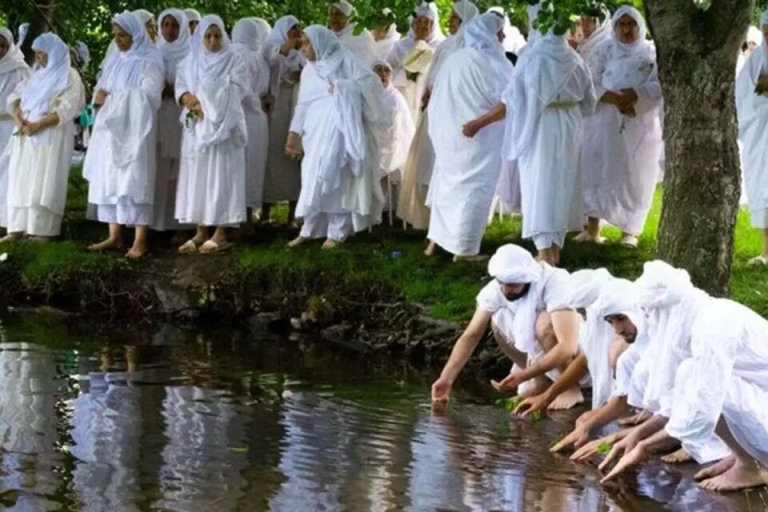 Mandeos durante una ceremonia llamada yardena, que recuerda el bautismo en el río Jordán