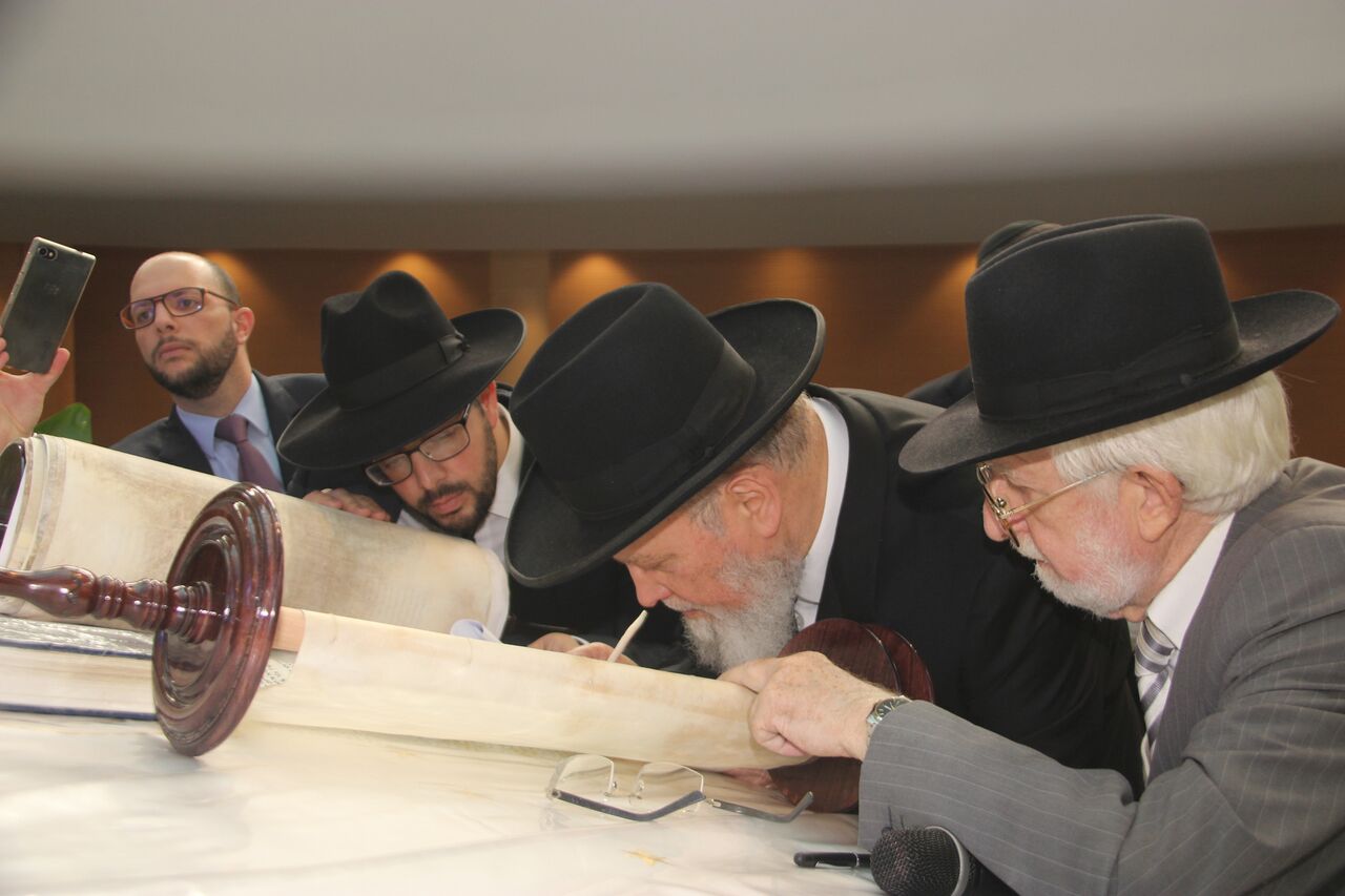 La “finalización” de este Séfer Torá, es decir la escritura de sus últimas letras, fue realizada por varios rabinos de la comunidad. El rabino Cohen se dirigió a los feligreses visiblemente emocionado, expresando que poder celebrar este aniversario de labores con la presencia del Gran Rabino Shlomo Amar, y con la introducción de una nueva Torá, hacía de ese el día más feliz de su vida.