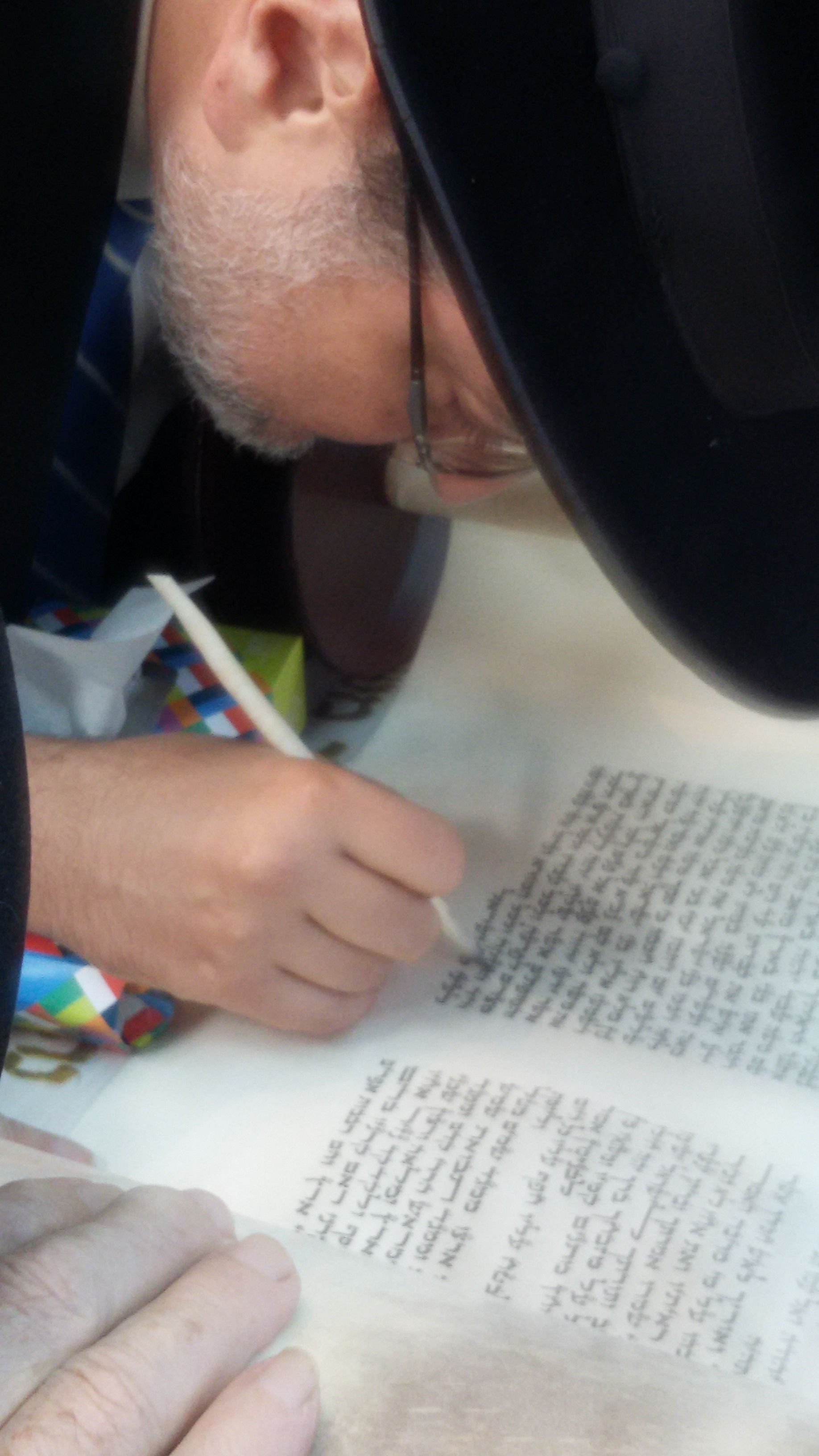 El rabino Cohen mientras completaba una letra del nuevo Séfer Torá