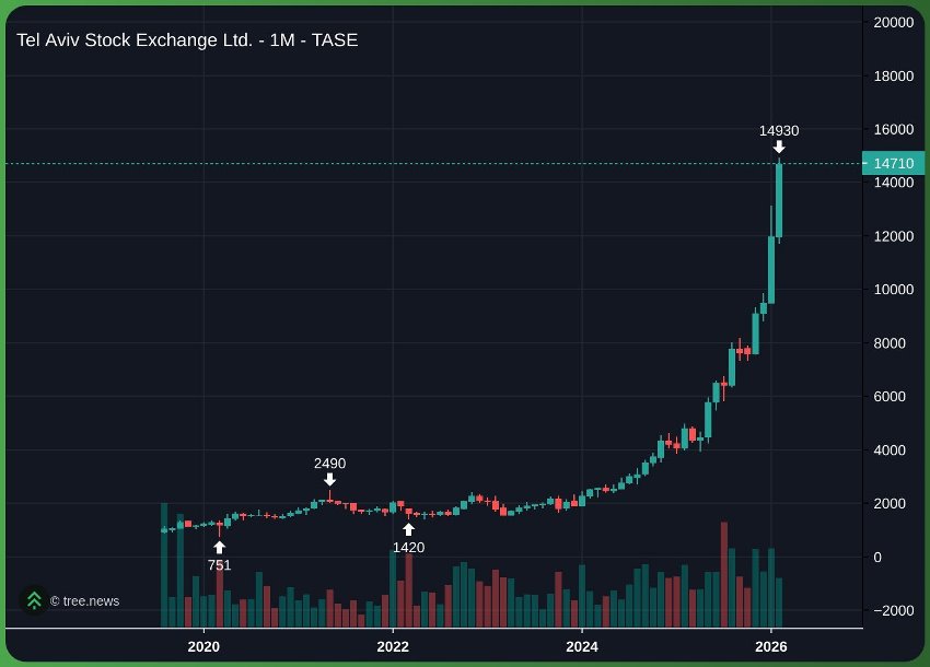 La bolsa de Tel Aviv comenzó a repuntar en 2024, pero en los últimos meses ha subido a grandes saltos y la actual guerra parece haberla potenciado
