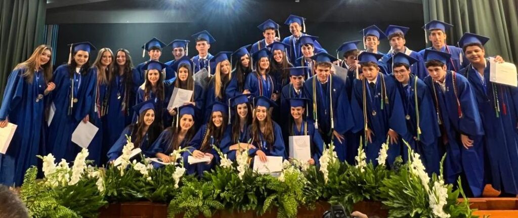 El evento, en el cual 32 jóvenes recibieron el título de bachilleres de la República, tuvo lugar en la Sala de Usos Múltiples de la Primaria, y se inició con bendiciones por parte de los rabinos Eitan Weisman (UIC) y Oshri Arguane (AIV), quienes resaltaron que la luz siempre vence a la oscuridad, y que ahora los graduandos salen de la «burbuja” del colegio y la comunidad para enfrentar los retos de la vida real. También recitaron Misheberaj por Venezuela e Israel.