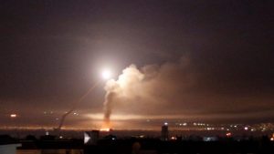 El bombardeo israelí del 11 de mayo de 2018 contra la infraestructura iraní en Siria, visto desde Damasco (foto: Israel Hayom)