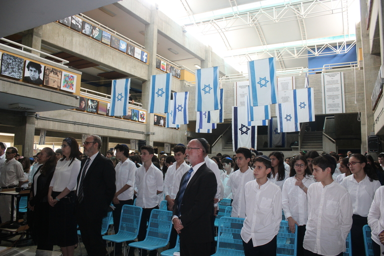 El miércoles 18 de abril los alumnos del liceo, con la bandera de Israel a media asta dieron inició a la conmemoración de Yom Hazicarón en un acto muy emotivo. Los acompañaron todos sus profesores quienes, tras guardar un minuto de silencio, dieron inicio al acto en honor a todos los caídos.